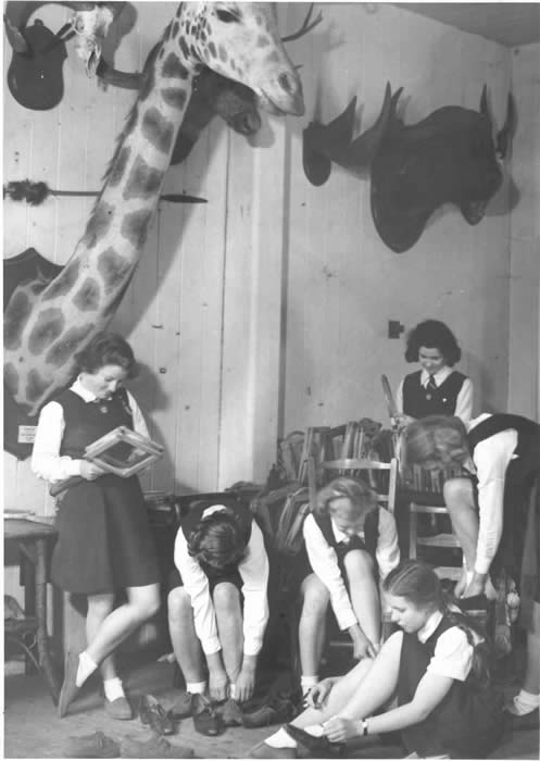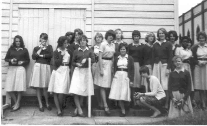 Taplow: Miss Dowdy, with Chris Barr, Pam Atkinson, Prue Tatten, Jane Thompson, Ann Sturgess and Jeannette Fossett