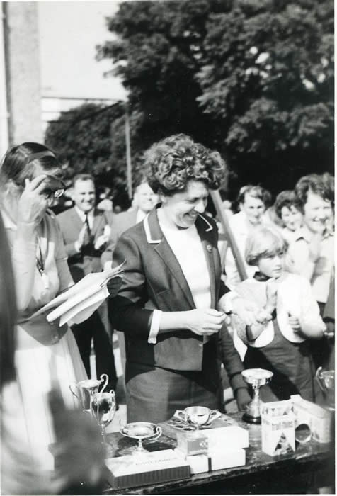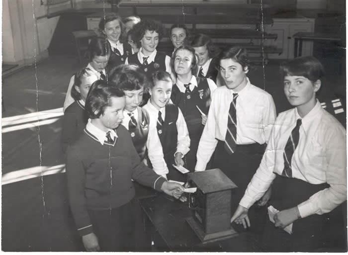 Prefects, Chris Turk and Jackie Berchier, with Caroline Thompson at front of line