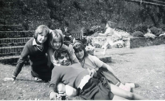 (l to r) Annabel Van der Gucht, Lizzy Rodwell, Rita George and Sarah Finnis. 'Humbug' is sitting on the bench in the background.